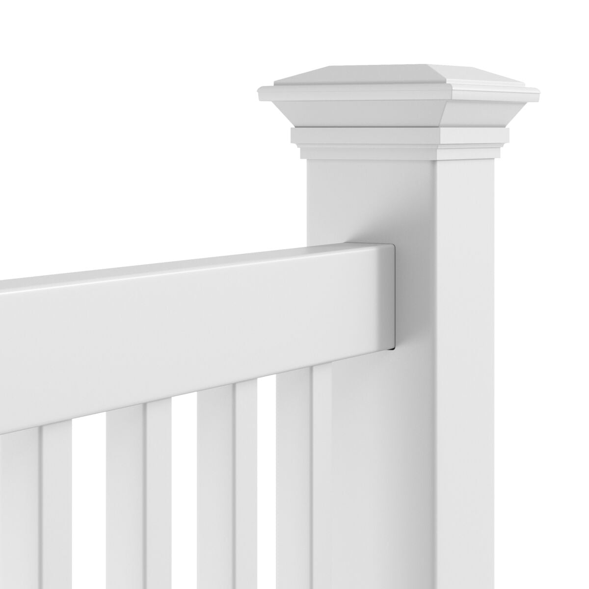 With a modern closed spindle top design, the Chesapeake offers clean lines and bold styling to complement your home and landscaping. The picket top section allows air to easily pass between spindles and the bottom section offers privacy with patented GlideLock boards that lock tightly together with no gaps. StayStraight rails provide structural durability to help decrease bending or sagging over time while securing infill boards and spindles.